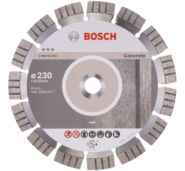 El disco de corte Bosch para concreto de Ø230 mm x 22,23 mm es una herramienta de alto rendimiento diseñada para cortar materiales de construcción duros como concreto y hormigón. Fabricado con segmentos diamantados de alta calidad, este disco proporciona una excelente velocidad de corte y una larga vida útil incluso en condiciones intensivas. Las ranuras segmentadas permiten una mejor disipación del calor y la evacuación del polvo, asegurando cortes más limpios y seguros.